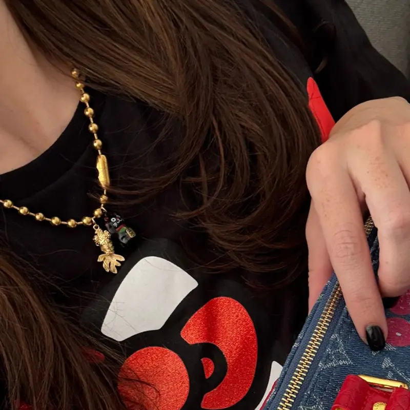 Cadena de acero inoxidable con gatito y pez de acero laminado